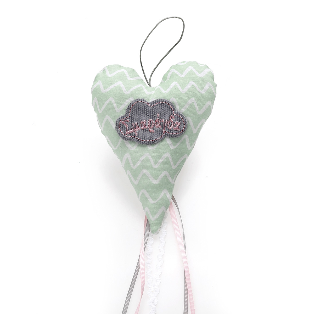 Δεν αξίζει τίποτα λιγότερο στο αγγελούδι σας από πρωτοτυπία και μοναδικές λεπτομέρειες για την ημέρα της βάπτισής του. Γι’ αυτό σας προτείνουμε μια διακοσμητική μπομπονιέρα σε σχήμα καρδιάς με αφρώδες υφή από βαμβακερό ύφασμα και μοντέρνο χρωματισμό. Εμπνευστείτε μέσα από την μεγάλη ποικιλία των προιόντων μας για να ολοκληρώσετε το στολισμό. Περιέχει 5 κουφέτα αμυγδάλου Χατζηγιαννάκης ή smarties και η διάσταση είναι 14Χ10 εκ.. Κάθε μπομπονιέρα κατασκευάζεται με ελεγμένα υλικά υψηλής ποιότητας, υπό την επίβλεψη και προσωπική μας φροντίδα, αποκλειστικά και μόνο στο χώρο μας, ώστε να μπορούμε να ελέγξουμε σε κάθε στάδιο κατασκευής της μπομπονιέρας ότι το αποτέλεσμα θα είναι ακριβώς αυτό που έχετε επιλέξει για τις σημαντικότερες στιγμές της ζωής σας. Στην τιμή συμπεριλαμβάνεται ο Φ.Π.Α., και η ελάχιστη παραγγελία είναι 30 τεμ..