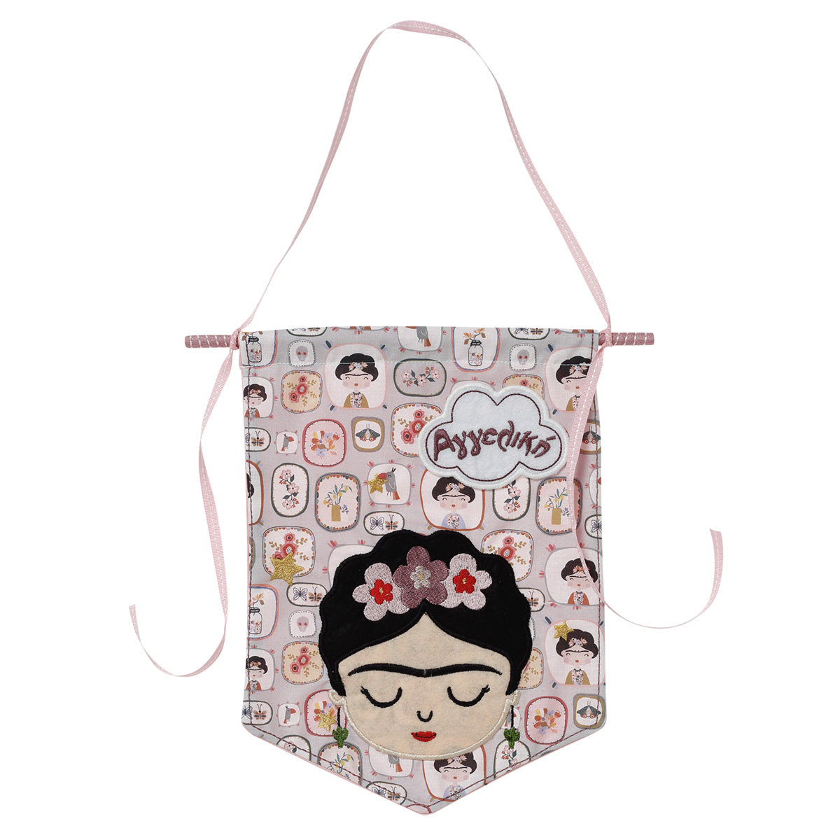 Διακοσμητικό σημαιάκι με κεντημένη τη Frida Kahlo