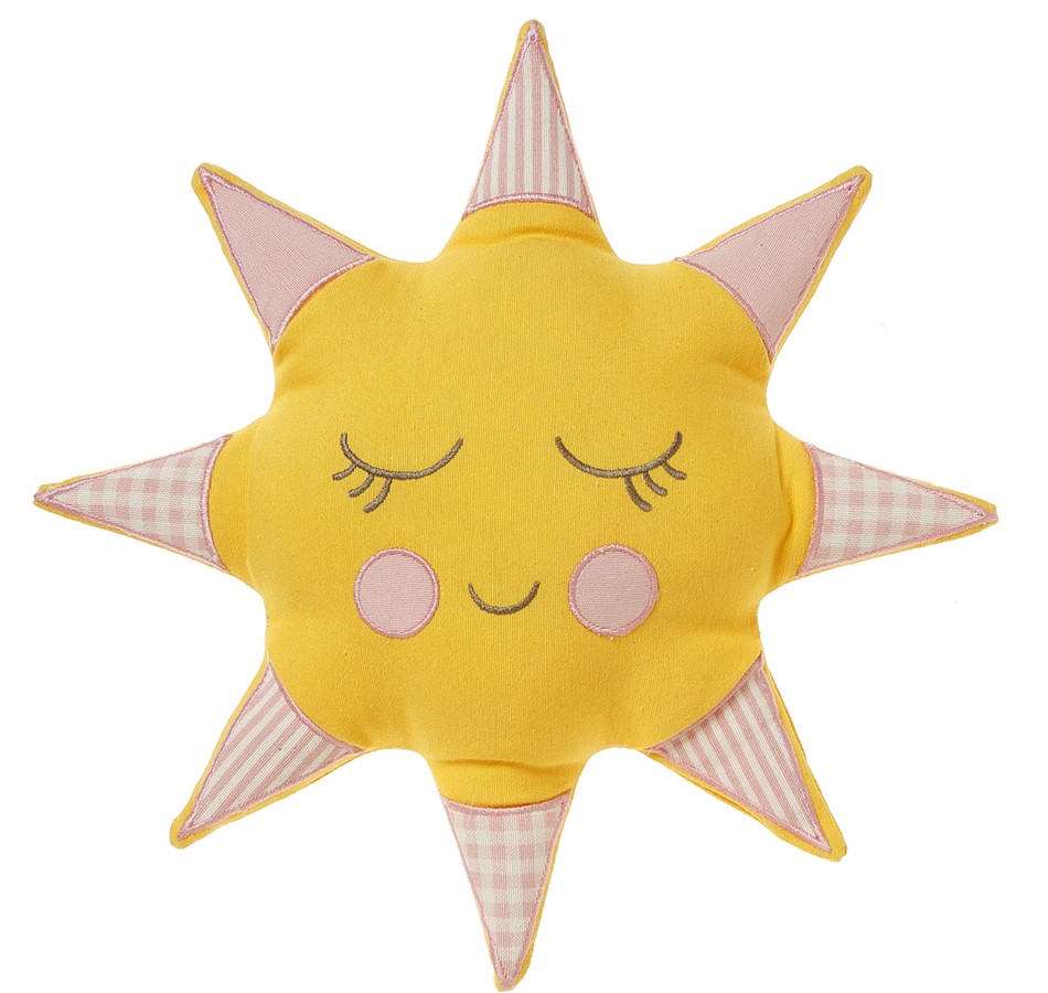 Αφήστε το παιδικό υπνοδωμάτιο να λάμψει με ένα υπέροχο διακοσμητικό μαξιλάρι σε σχήμα ήλιου. Σε κίτρινο χρώμα στην βάση του και με ροζ αποχρώσεις στις ηλιαχτίδες. Αυτή είναι μια πρόταση από εμάς, εσείς μπορείτε να αλλάξετε επιμέρους ένα ή και όλα τα χρώματα και να δημιουργήσετε ένα πραγματικά μοναδικό δώρο. Μπορούμε επίσης χωρίς επιπλέον επιβάρυνση να κεντήσουμε ένα μονόγραμμα που θα μας ζητήσετε στις “Σημειώσεις παραγγελίας”. Η διάσταση του είναι 35Χ35cm..