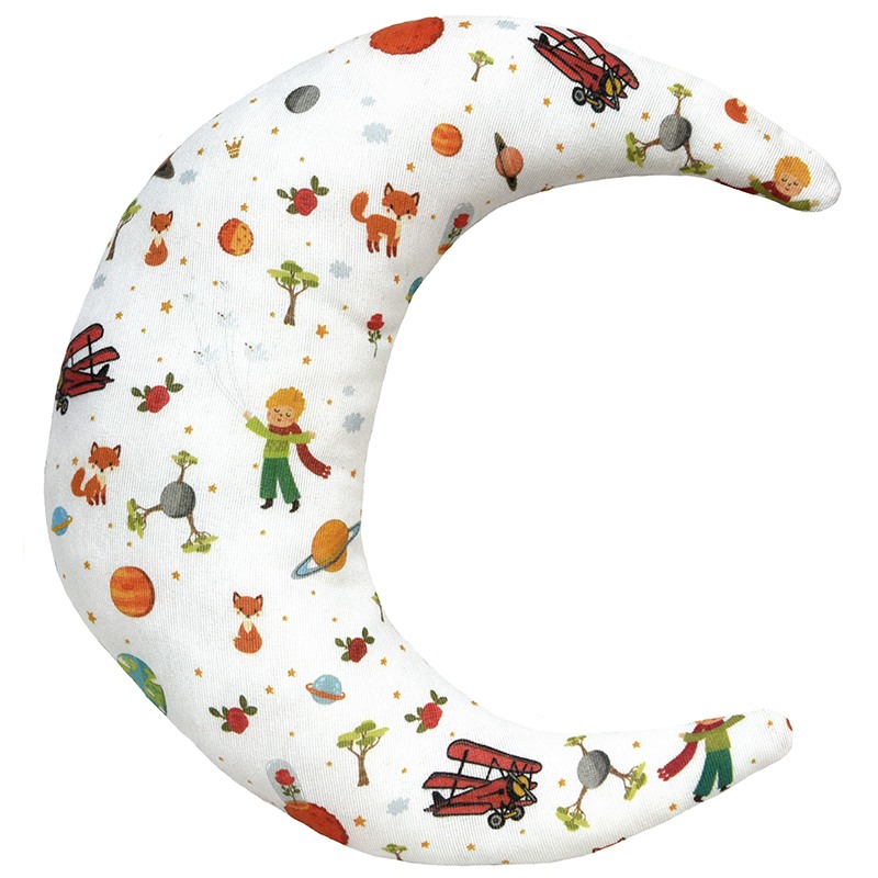 Διακοσμητικό μαξιλάρι μισοφέγγαρο για να ομορφύνετε λίγο ακόμα το παιδικό δωμάτιο, με λονέτα ύφασμα και θέμα τον μικρό πρίγκιπα, πλανήτες, αεροπλάνο, λουλούδι, αλεπού και άλλα πολλά που θα το αγαπήσουν. Η διάσταση του είναι 33Χ32εκ..