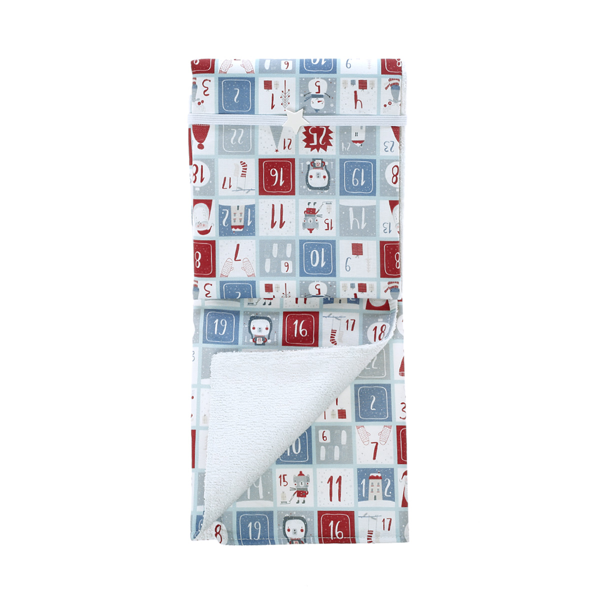 Σελτες για μωρό με Χριστουγεννιάτικο ύφασμα που εχει εκτυπωμένες πάνω του παραστάσεις όπως: Αγ. Βασίλη, πιγκουΐνο, τάρανδο, Χριστουγεννιάτικα δέντρα και ένα χαρούμενο ημερολόγιο. Έχει λαστιχάκι που διακοσμείτε με αστέρια για να παραμένει κλειστό και πάντα προφυλαγμένο με Χριστουγεννιάτικο στυλ. H διάσταση του είναι 45Χ72cm.
