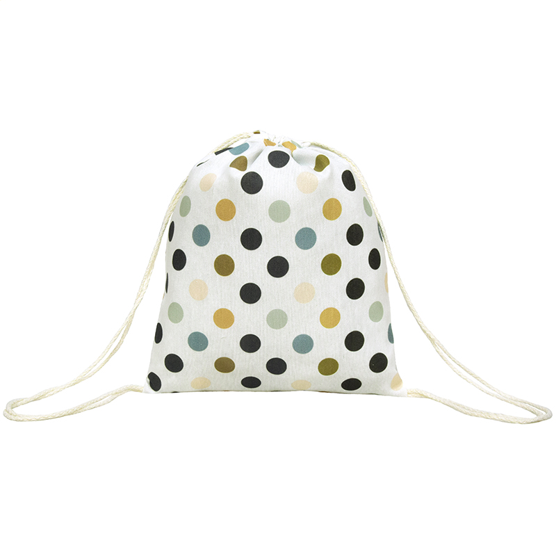 Παιδικό υφασμάτινο σακίδιο πλάτης από ύφασμα εκρού με μεγάλα πολύχρωμα πουά και κορδόνια για να σουρώνει και να κρατά τα πράγματά της ασφαλή. Ένα παιδικό backpack ιδανικό για την βάπτιση, το party και τις καθημερινές δραστηριότητες. Κάντε το να νιώθει αυτόνομο και οργανωτικό, με αυτό το υπέροχο δώρο. Η διάσταση του είναι 30Χ25 εκ..