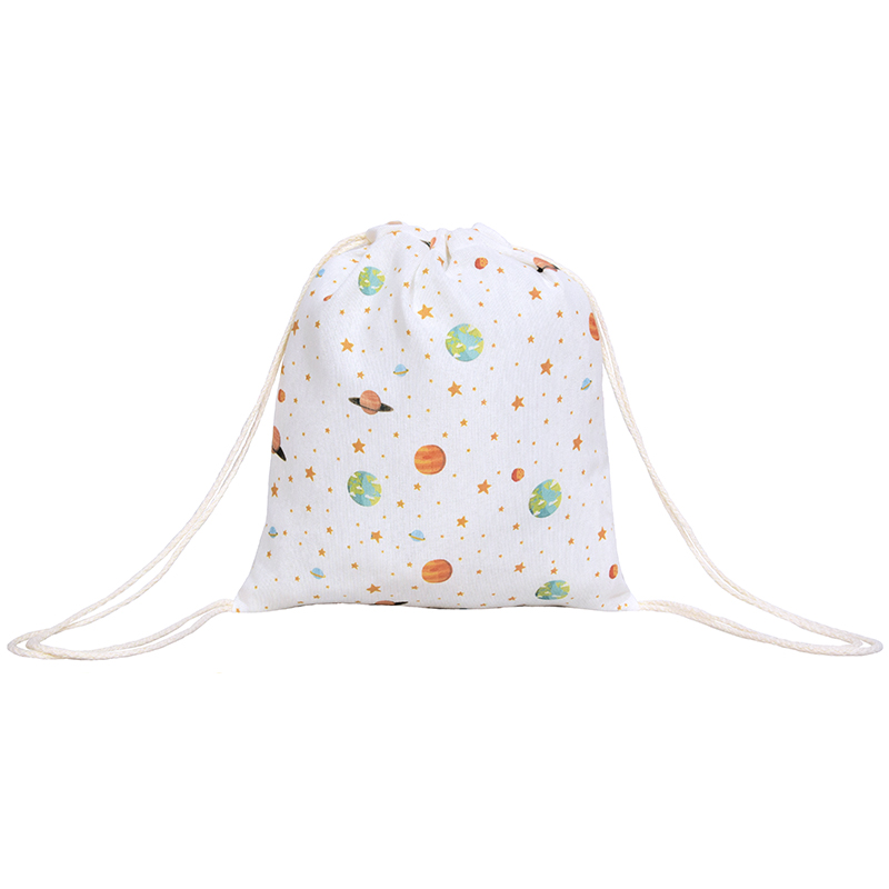 Παιδικό υφασμάτινο σακίδιο πλάτης από ύφασμα με θέμα τους πλανήτες και το διάστημα. Σε λευκή βάση με πλανήτες του ηλιακού μας συστήματος και πολλά αστέρια, θα ταξιδέψουν τα παιδιά σε άλλον γαλαξία. Ένα παιδικό backpack ιδανικό για την βάπτιση, το party και τις καθημερινές δραστηριότητες, δίνοντας στο παιδί σας την αυτονομία να έχει τα πράγματά του μαζί και τακτοποιημένα. Η διάσταση του 30Χ25 εκ..