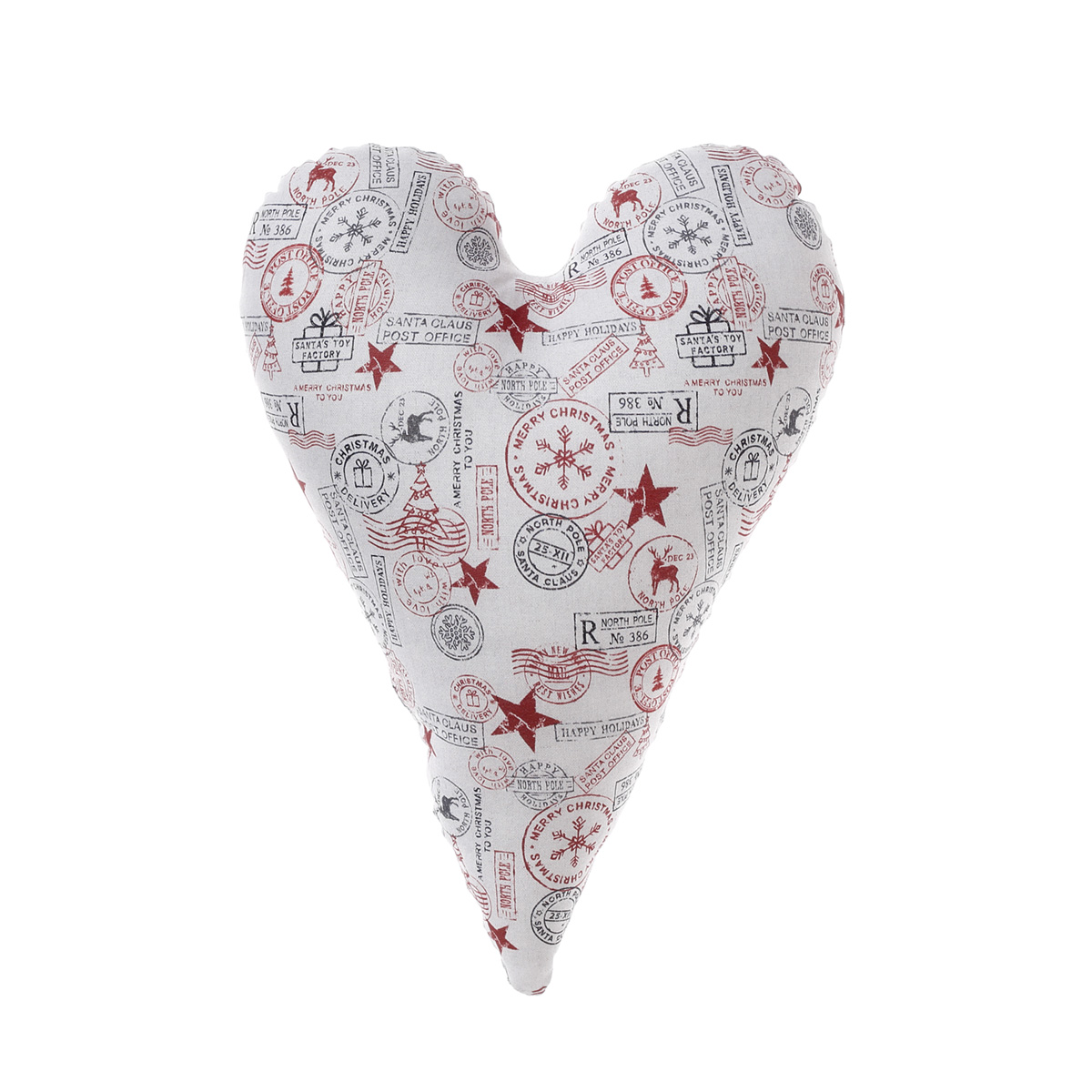 Χριστουγεννιάτικο μαξιλάρι σε σχήμα καρδιάς, με ένα υπέροχο ύφασμα ταχυδρομείο Santa Claus για την Χριστουγεννιάτικη διακόσμηση του σπιτιού. Σε λευκή βάση, μπορντό και μπλε αποχρώσεις, θα ταιριάξει σε κάθε σπίτι. Η διάσταση του είναι 36Χ27cm..